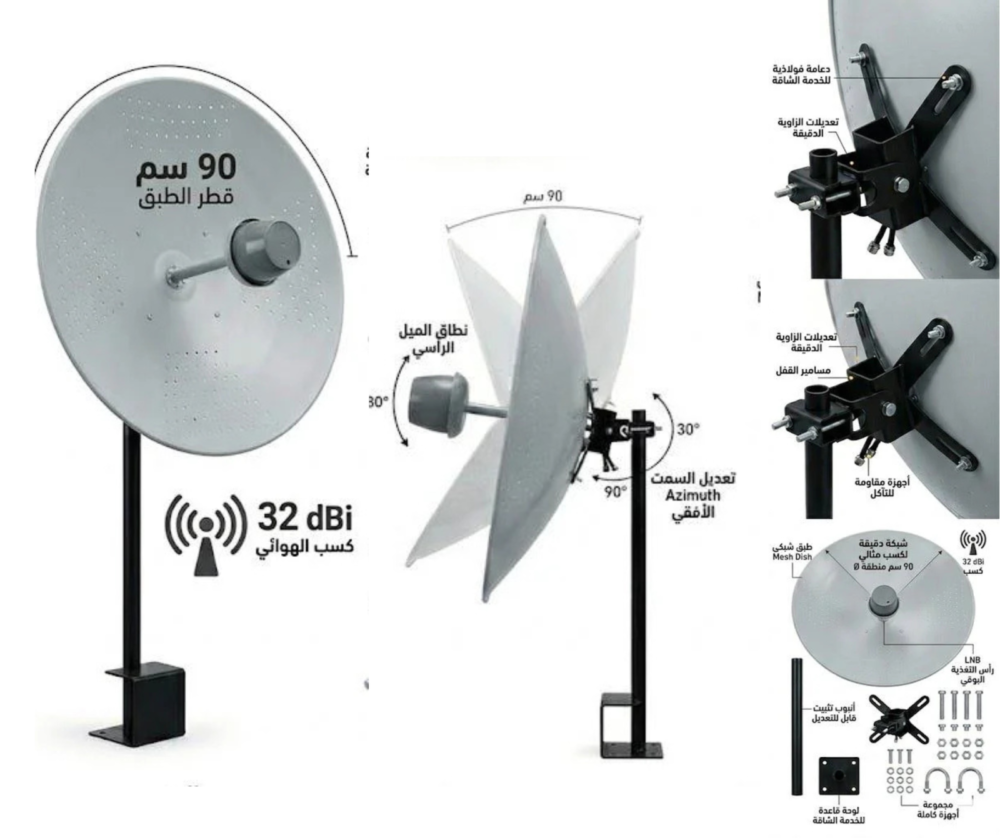 انتينا أومني بقوة 12dBi باكج كامل لتقوية إشارة الإنترنت ودعم شبكات 4G و5G، يعمل على جميع الترددات ومتوافق مع STC وZain وMobily، مع كيبل LMR300 بطول 20 متر وضمان سنتين.