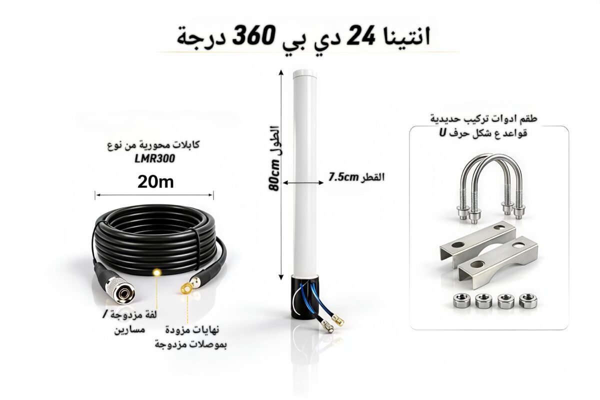 انتينا متنقل لتقوية إشارة الإنترنت 4G مناسب للسيارات والكرفانات والرحلات البرية، يعمل مع الراوترات المنزلية والمتنقلة، بقاعدة مغناطيسية قوية وثبات عالي، مع ضمان سنتين.